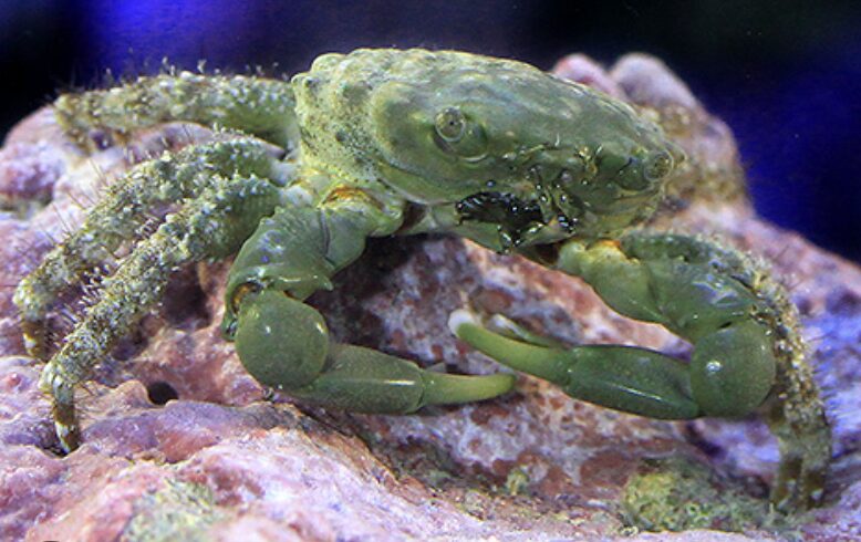 このシオグサを食べる生き物ですが、エメラルドグリーンクラブです。