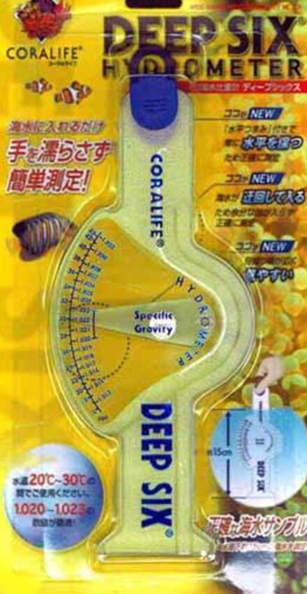 人工海水の素が多く溶け込んでいると、比重は高くなります。